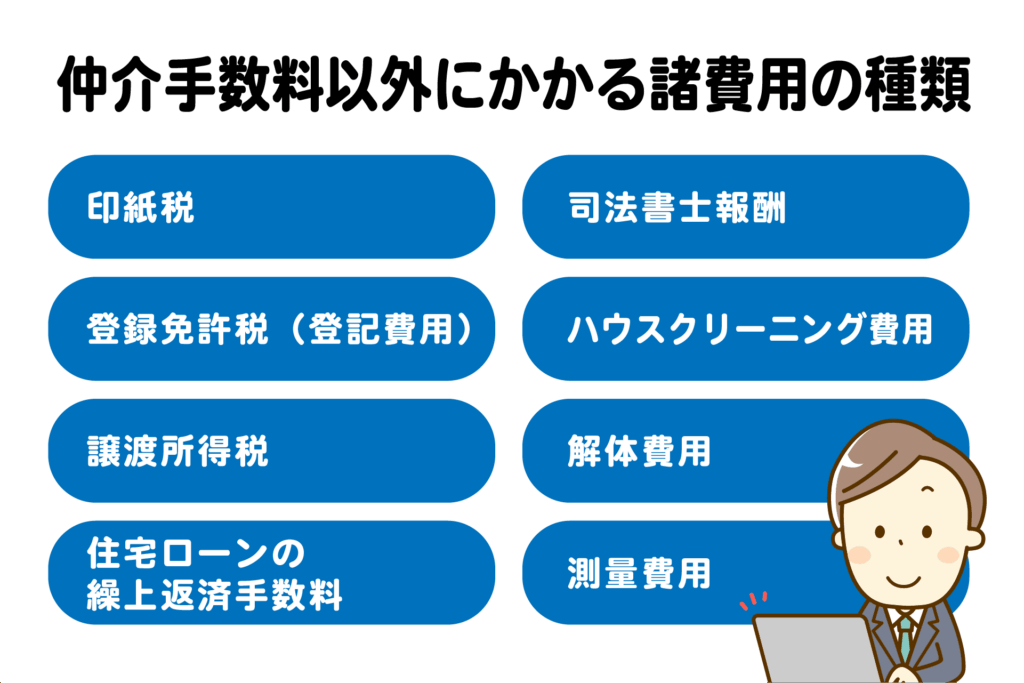 一般的な仲介手数料(売却価格の3%+6万円+税)が必要です。